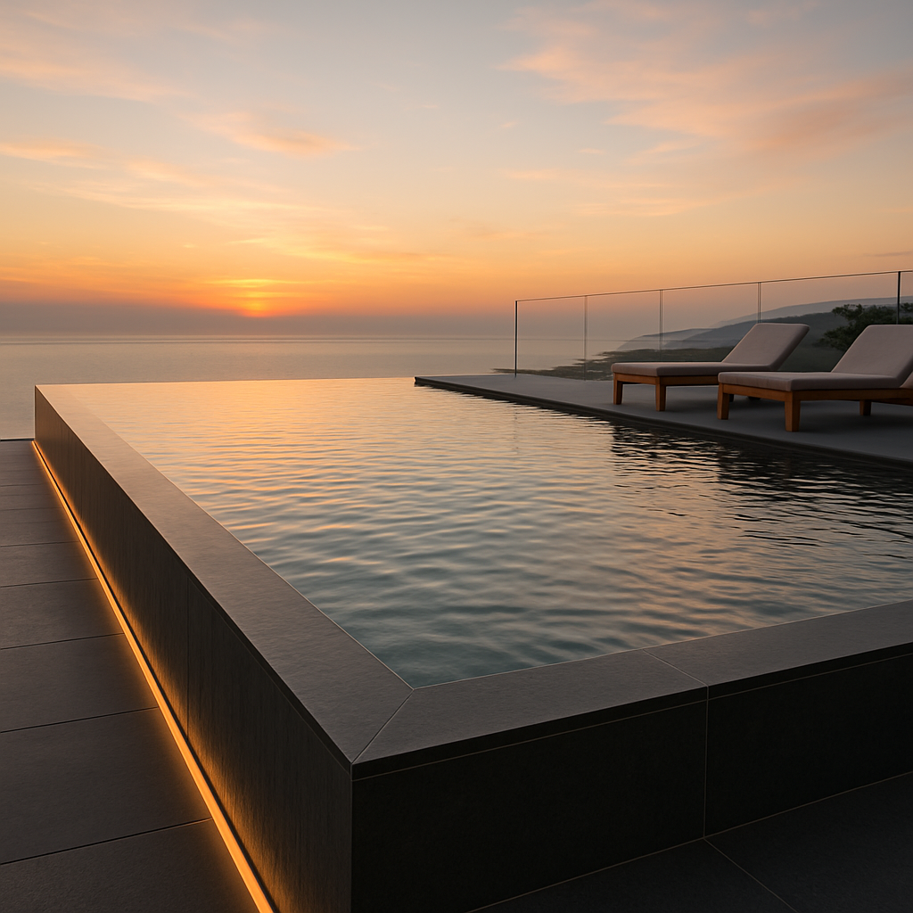 Infinity Pool Gestaltung: Inspirierende Designideen, Materialien und Planungstipps – Blickachsen, Licht- und Wasserinszenierung, Kosten & Sicherheit. Jetzt Ihre Traumterrasse entdecken!